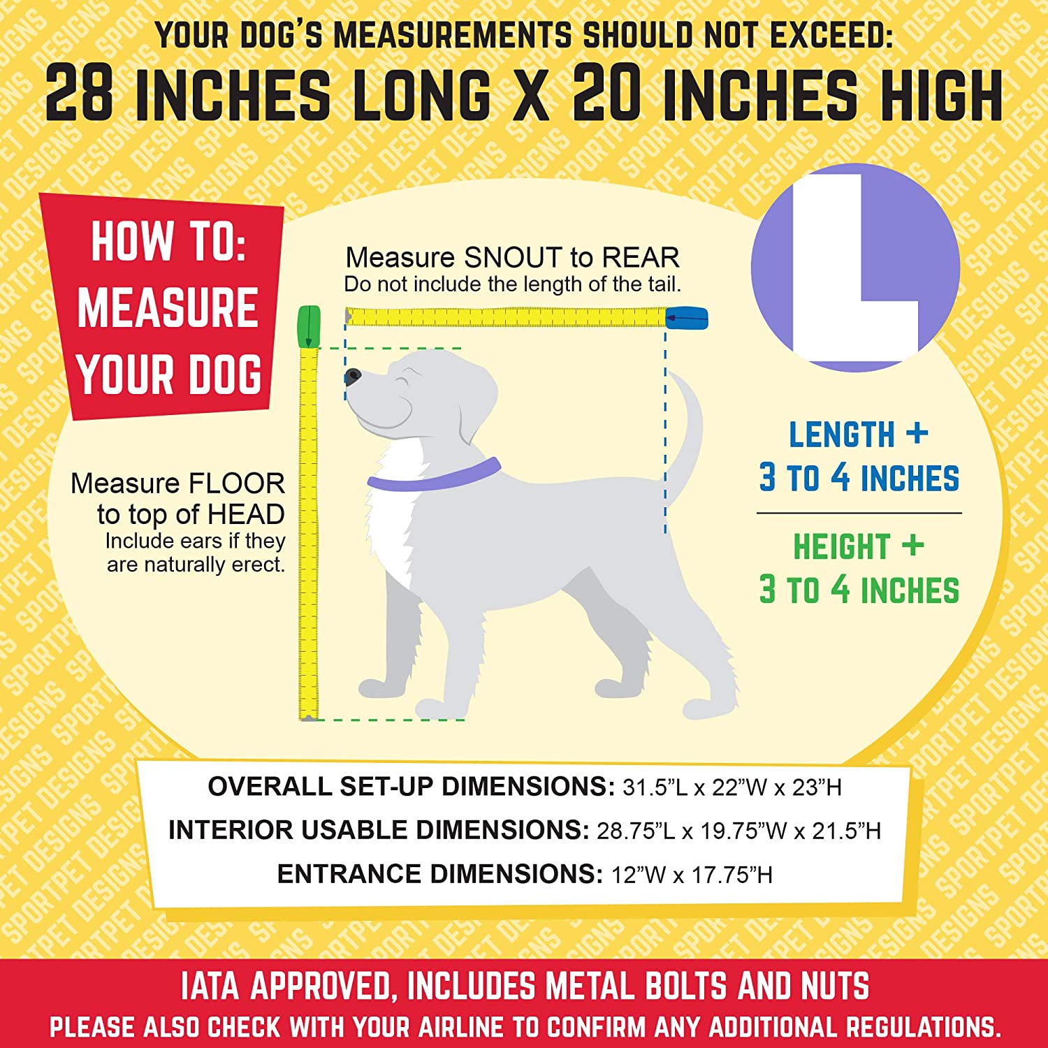 🔮Dog Crates SportPet Designs Plastic Kennels Rolling Plastic Airline Approved Wire Door Travel Dog Crate by Pet Food - January 17, 2022 Price: $ 89.00Small ($60.00)Medium ($65.00)Large ($89.00)X-Large ($129.00)XX-LargeXXX-LargeBrandSPORT PETColorTanItem Dimensions LxWxH32 x 22 x 23 inchesMaterialPlasticItem Weight16 PoundsAbout this itemSee size chart photo and video to help determine correct size and featuresYour dog’s measurements should be under 29” L x 20” H for large kennelIata airline approved 2 dishes and 4 live animal stickers metal bolt and nuts includedFor kennel trained pets only. Wheels snap on and off as neededSturdy and durable plastic construction makes for easy assembly. Share This: Facebook Twitter Pinterest Linkedin Whatsapp Whatsapp Newer Post Older Post You May Also Like 0 Comments